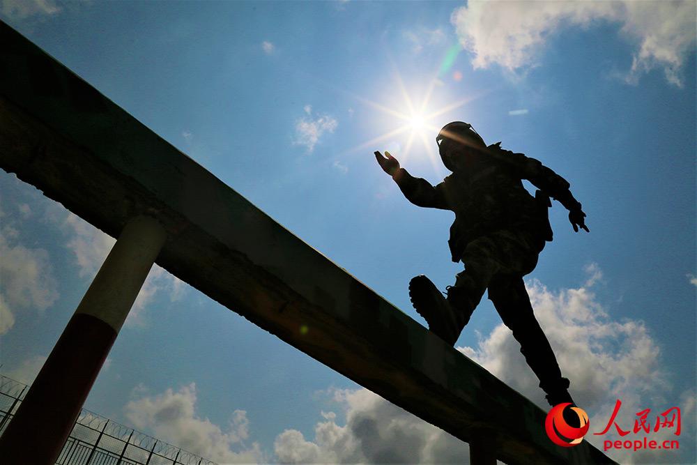 人民网广西4月25日电 4月以来,广西武警北海支队进行战术、400米障碍、攀登、极限体能等10余种高强度训练,磨炼官兵意志品质,锤炼过硬身体素质,以此提高官兵实战能力。(摄影报道 余海洋)