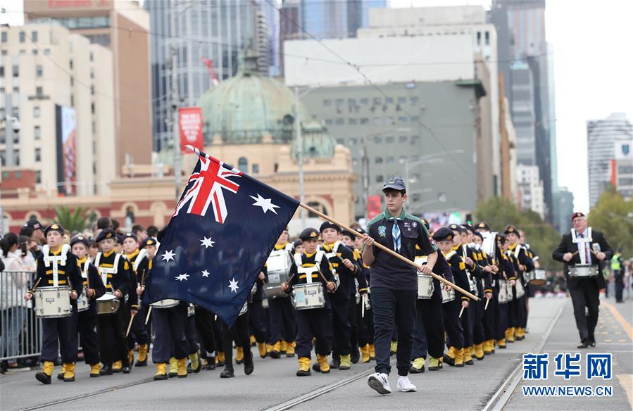 4月25日,在澳大利亚墨尔本,参加纪念活动的队伍在行进中。新华社记者 白雪飞 摄