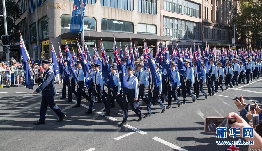 4月25日,在澳大利亚悉尼,参加纪念活动的队伍在行进中。新华社发(朱宏业摄)