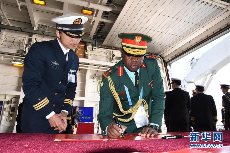 4月25日,一名海军代表团团员在井冈山舰上参观并写下留言。 当日,参加庆祝中国人民解放军海军成立70周年多国海军活动的海军代表团登上中国部分海军舰船参观,并与中国海军官兵交流。 新华社记者李紫恒摄