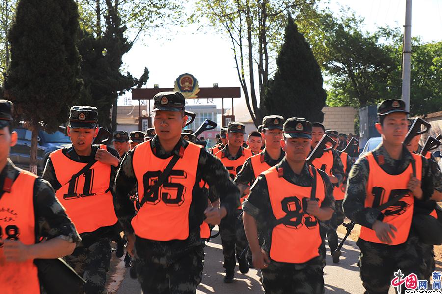 官兵正在进行五公里武装越野考核。葛国通 摄