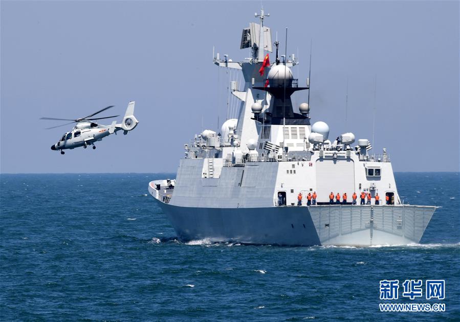 4月26日,参加联演的直升机从中国海军日照舰上起飞。 当日,中国—东南亚国家“海上联演—2019”在青岛某海域举行。参加此次演习的有中国、泰国、菲律宾等7个国家,参演兵力包括13艘舰艇、4架直升机。据介绍,演习以联合应对海盗威胁和海上应急医疗救援为课题。 新华社记者 李紫恒 摄