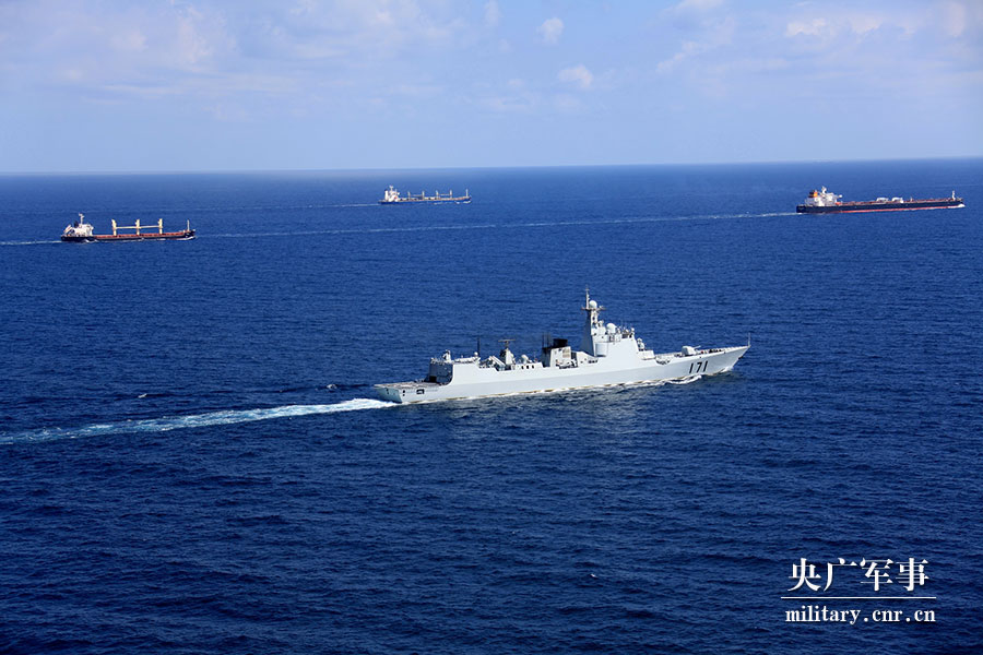 海口舰执行首批护航任务,巡航亚丁湾(资料图)