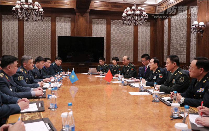 比什凯克4月29日,正在比什凯克出席上海合作组织成员国第十六次国防部长会议的国务委员兼国防部长魏凤和会见哈萨克斯坦国防部长叶尔梅克巴耶夫。李晓伟摄