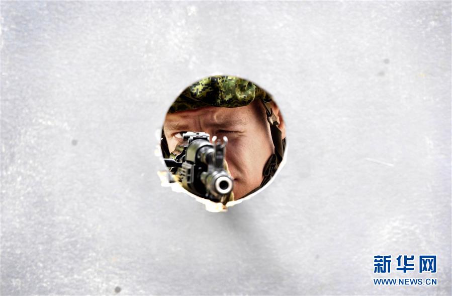 4月30日,一名俄罗斯海军陆战队员在战斗射击竞赛中。 当日,中俄“海上联合—2019”军事演习陆战分队军事竞赛举行。中俄两国海军陆战队员就步枪精度射击、战斗射击、狙击枪射击及400米越障等4个课目进行竞赛。 新华社记者 李紫恒 摄