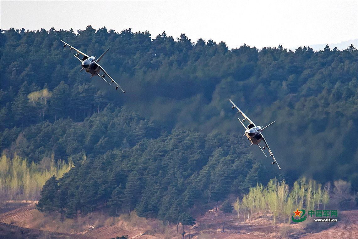 飞行员驾驶战机超低空高速通过山谷。杨盼 摄