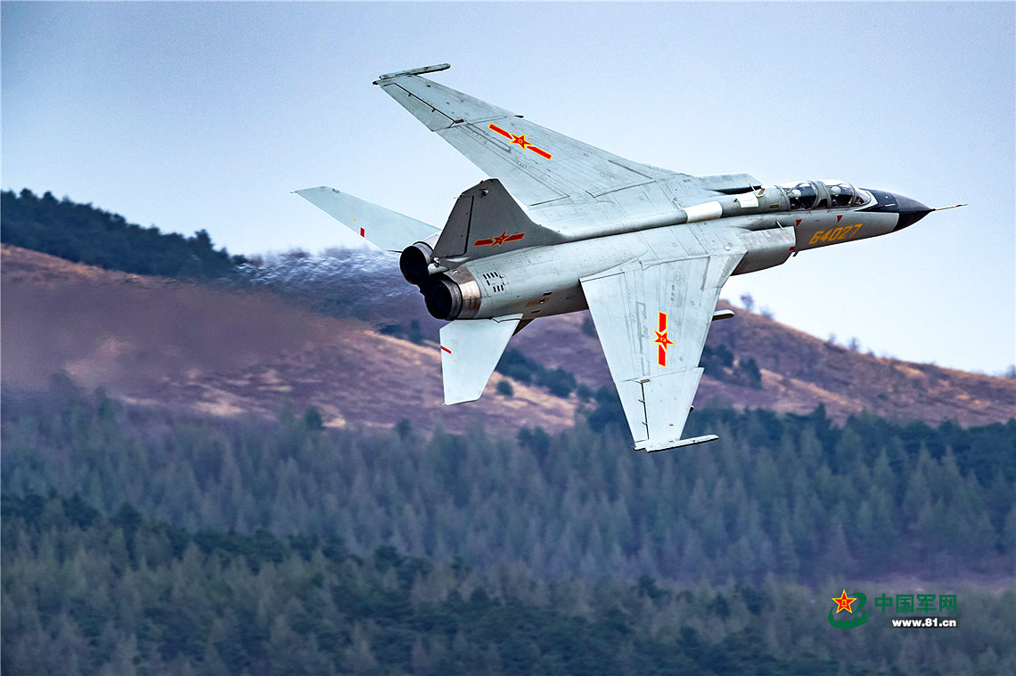 飞行员驾驶战机超低空高速通过山谷。杨盼 摄