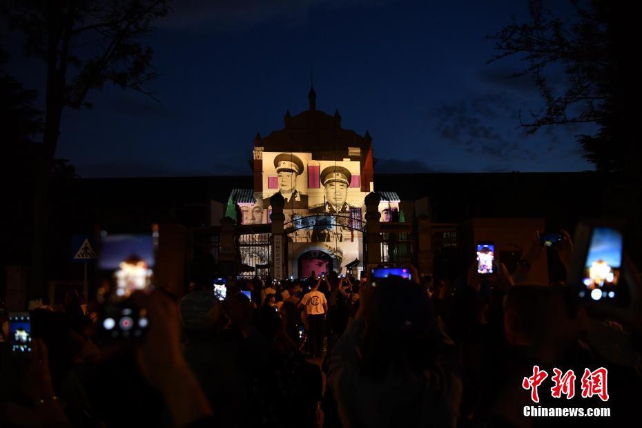 五一节期间,云南陆军讲武堂上演实景灯光3D秀,吸引民众驻足观看。云南陆军讲武堂于1909年8月正式开学,是中国近代史上一所著名的军事院校,与黄埔军校齐名。先后培养了以朱德、叶剑英、龙云等为代表的300余名将帅。图为5月2日晚,讲武堂标志性的正面建筑上开启的灯光秀。 中新社记者 刘冉阳 摄