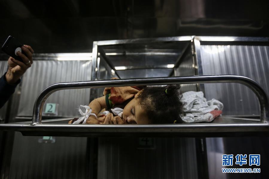 5月4日,在加沙城,一名幼儿在以军轰炸中丧生。 以色列国防军4日晚发表声明说,截至当晚,以军轰炸了加沙地带约120个军事目标。 据加沙地带卫生部门当天发表的声明,以军当天对加沙地带的轰炸共造成4名巴勒斯坦人死亡、30名巴勒斯坦人受伤,死者中包括一名37岁孕妇和她年仅14个月大的女儿。 新华社发