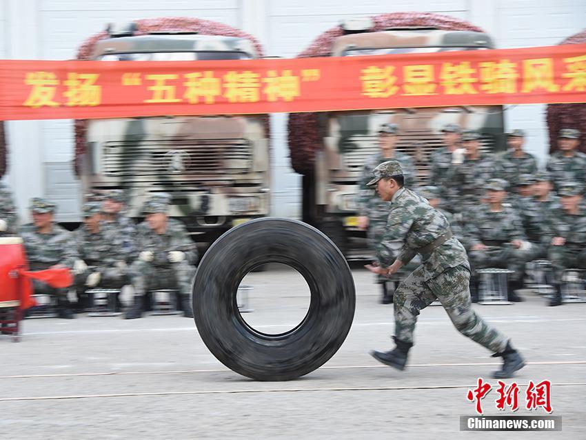 军人版运动会 汽车兵拉9吨重运输车冲刺