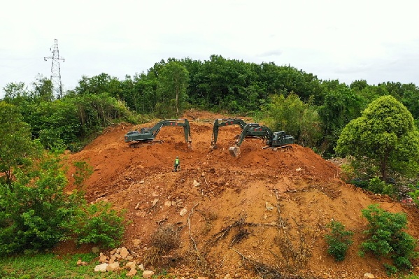 5月8日,武警某部在抢险救援演练中利用大型机械快速处置“滑坡体”。新华社发(李岩 摄)