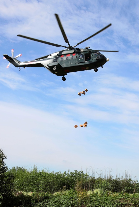 5月8日,武警某部在抢险救援演练中利用直升机向“受灾区域”投送物资。 新华社发(甘冬冬 摄)