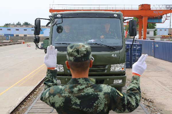 军人版运动会 汽车兵拉9吨重运输车冲刺