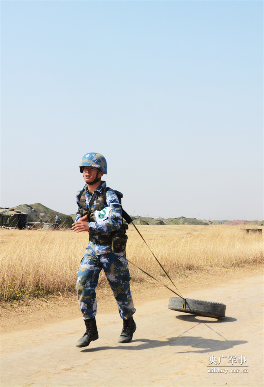 军人版运动会 汽车兵拉9吨重运输车冲刺