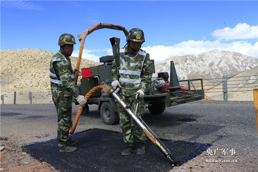 官兵正在修整平面。