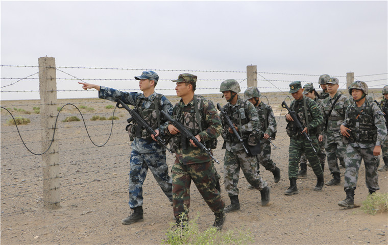 图⑦:军地青年典型与陆军某部官兵一起在边境巡逻。