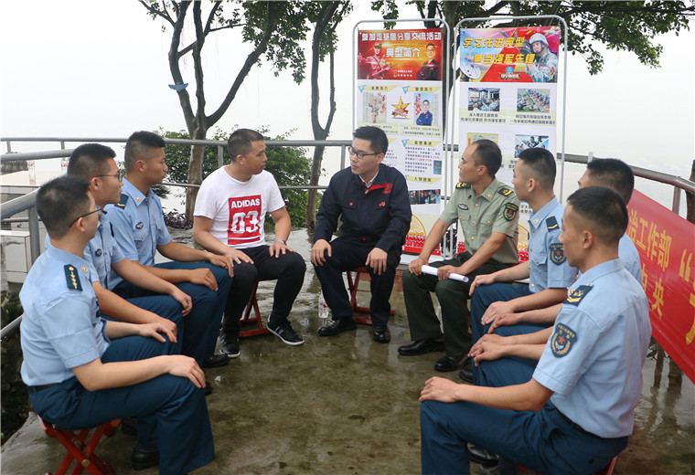 图⑨:军地青年典型与空军某部官兵座谈交流。