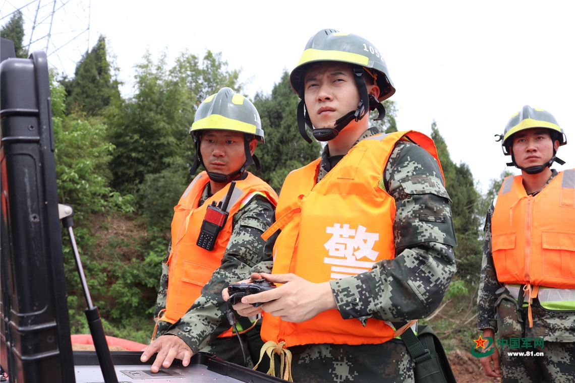 操纵水下机器人侦察水情。马春华 摄
