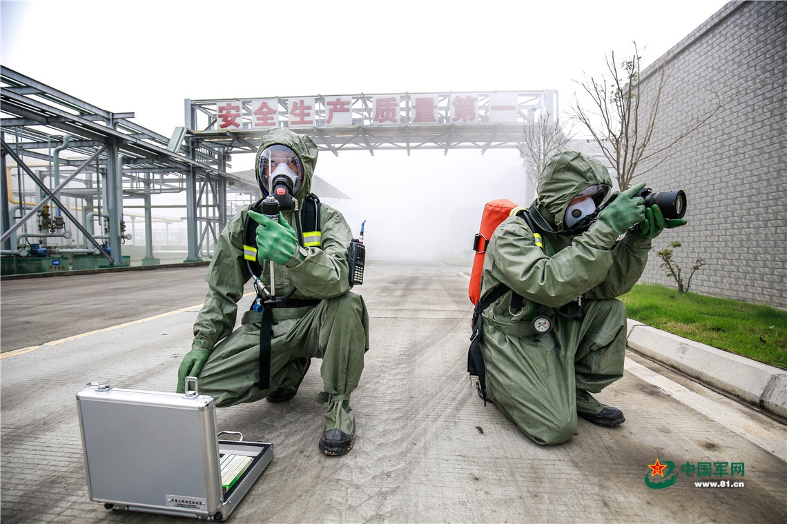 防化分队快速侦测“有害气体”泄漏情况。 李岩 摄
