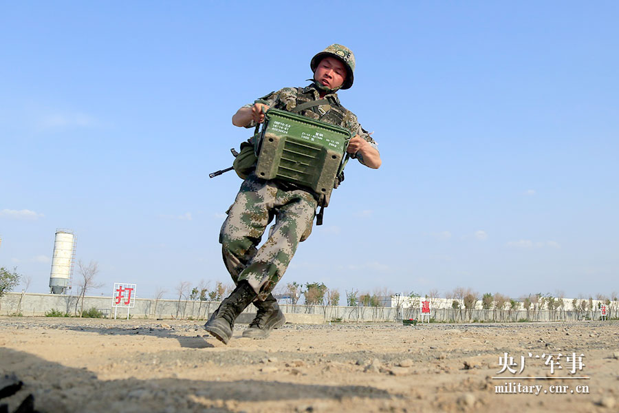 在搬运弹药箱比武中,官兵们又以8人为小组采取接力方式,采用提、抱、扛、拉等任选姿势完成30公斤弹药箱搬运完成15米*2折返。“加油!加油……”随着拉拉队员在两旁的呐喊声,竞赛人员迅速向前奔袭。