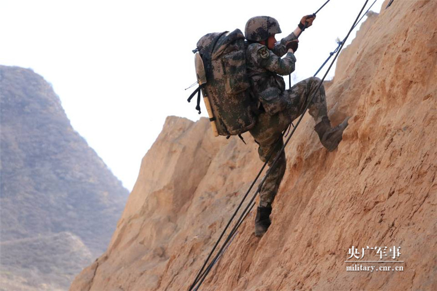 特战小队队员正在攀登崖壁。高傲摄