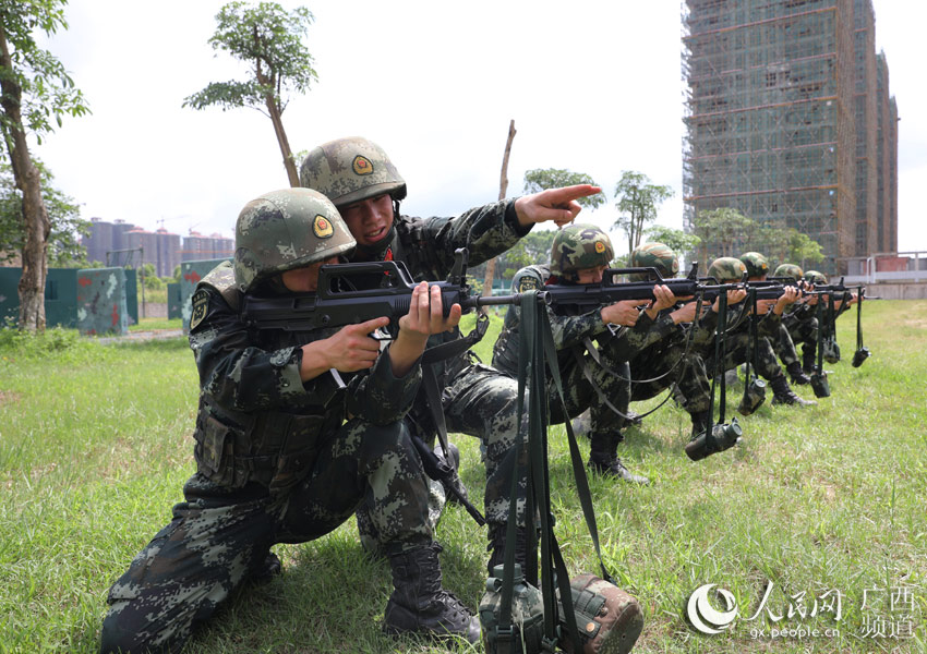 身为老特战的弟弟在指导新来的哥哥进行据枪训练