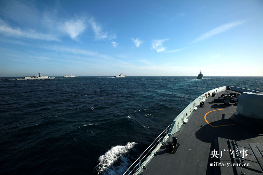图为5月2日海上演习期间,湘潭舰和参加演练的各国舰艇。张千摄