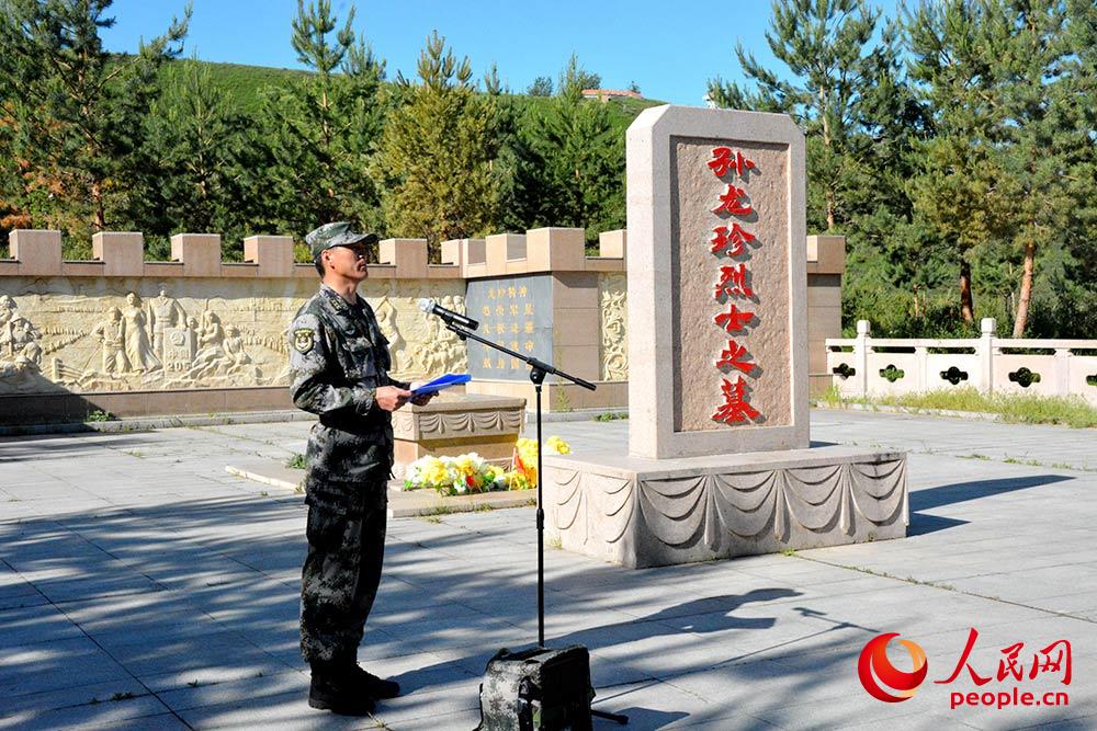 塔城军分区某边防团政委高健华主持祭奠活动。萨妮娅 摄