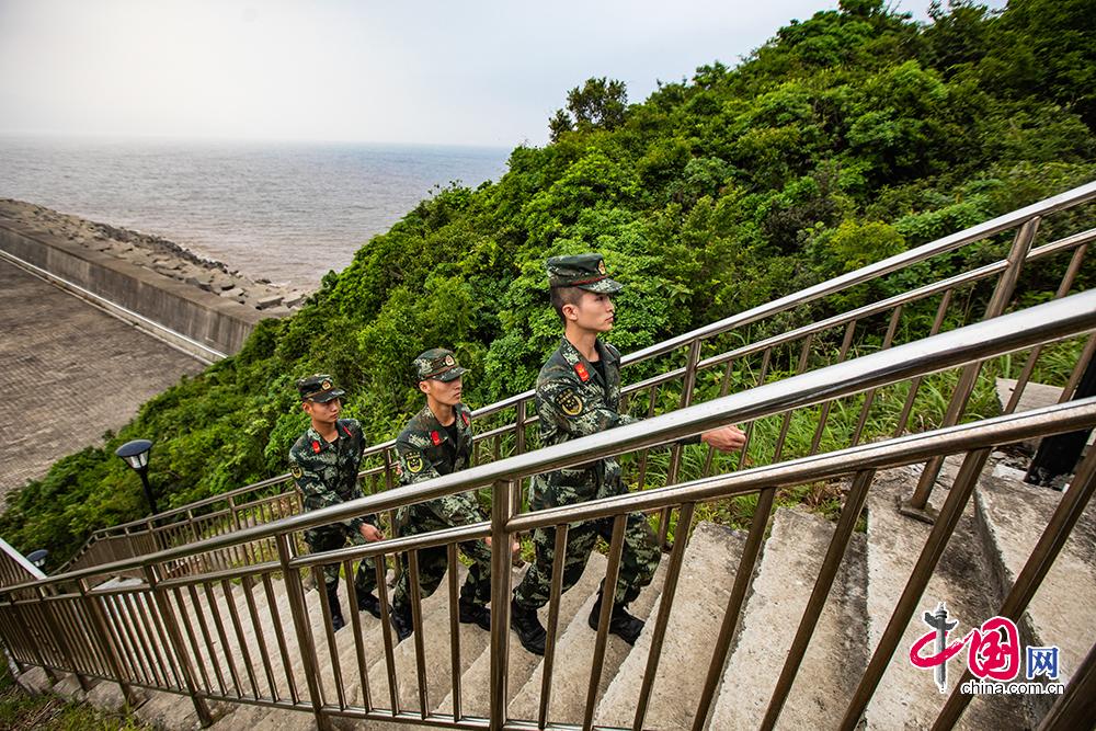 每一个能够在二号哨执勤的战士都有属于自己和这里的故事,2015年入伍来到这里的战士马博(右一)印象最深的事发生在2017年,当时有一艘渔船在半夜的时候进入到电厂的入水口附近非法捕捞,这样的行为会对核电机组的运营造成安全隐患。接到报警后中队马上对这个情况进行处置,在出水口附近派两艘快艇进行堵截。当时渔船“狡猾”的在一开始没有启动发动机,使得搜索的战士无法追踪它的声音,随后它突然启动发动机直接冲了出来,开始逃窜。当时正在二号哨执勤的马博迅速使用远程探照灯对海面上逃生的渔船进行搜索定位。随后,武警战士在这盏明灯的指引下一路追随渔船到对面的渔村,并与当地公安配合将肇事者抓捕。中国网记者 郑亮摄
