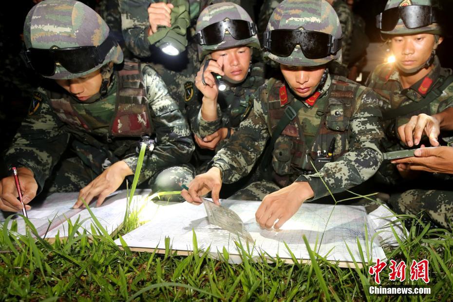 特战队员正在研究夜间按图行进路线。文/雷辙 周奕 王翔宇 图/雷辙