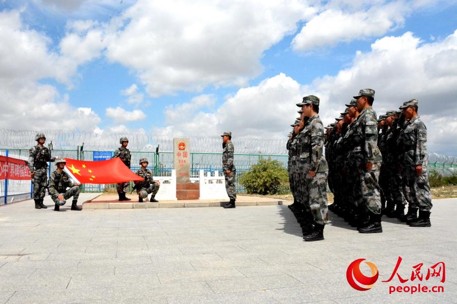 参与界碑描红的战士们在界碑前宣誓。萨妮娅 摄