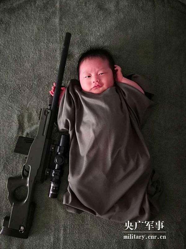 六一儿童节来临之际,当所有的爸爸想给孩子买什么礼物时,军爸爸却找来了玩具枪、毛毯、军功章、子弹壳,在家里搭起了简易摄影棚,拍起了刚满月的小军娃!给这个刚满月的小军娃增添了一份童年最美好的回忆。(侯旭涛 任朝阳 王亚楠摄影报道)