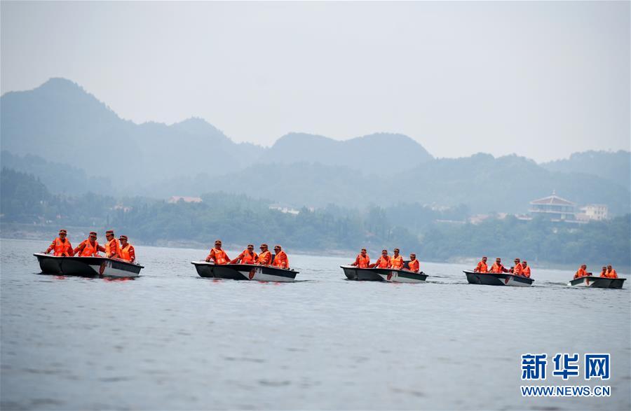 6月2日,武警官兵在贵州省清镇市红枫湖开展冲锋舟编队航行训练。
