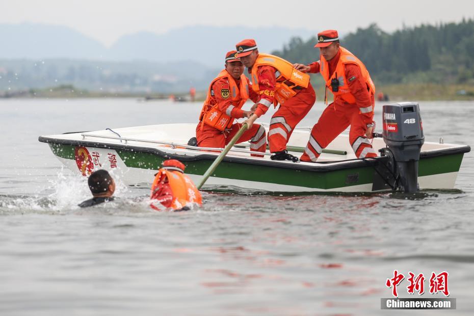 6月2日,武警官兵进行“水上救援”训练。当日,武警贵州总队机动支队在贵州省清镇市红枫湖组织开展船艇专业训练,武警官兵对冲锋舟离(靠)岸、编队航行、水上救援等课目进行训练。此次训练旨在提高官兵的水上救援技能,强化协调配合,确保遇有任务高效施救。 中新社记者 瞿宏伦 摄