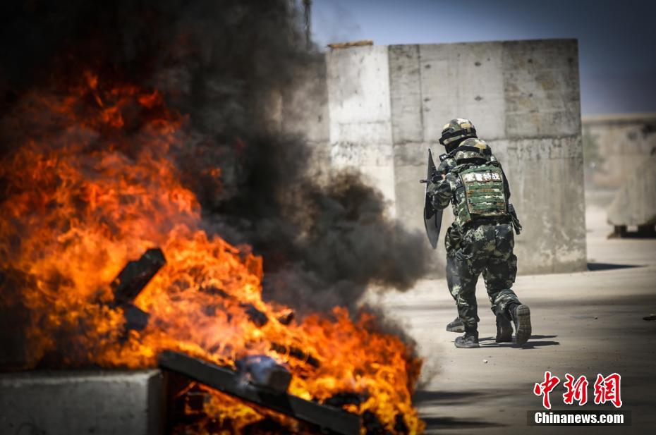 近日,武警甘肃省总队机动支队组织特战官兵开展反劫持战斗演练,以逼真的战场环境和实战化的情况诱导,检验特战队员在应对突发事件中的应急反应和协同作战能力。图为迅速通过复杂地域。侯崇慧 摄