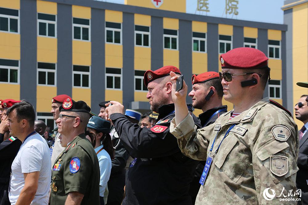 外宾观看《模拟街区战斗射击》录像片。徐凯悦 摄