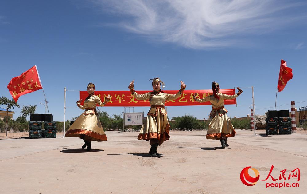 人民网北京6月19日电 强军的号角边关吹响,嘹亮的战歌大漠回荡。6月18日,解放军文工团“文艺轻骑队”来到北部战区陆军某边防旅甘其毛都边防连,和乌拉特中旗乌兰牧骑一起,为戍边官兵奉上了一场丰盛的文化大餐,拉开了在该边防旅为兵服务演出的序幕。(摄影报道:张辉 武祎 齐兆鹏 张琦 熊峰)