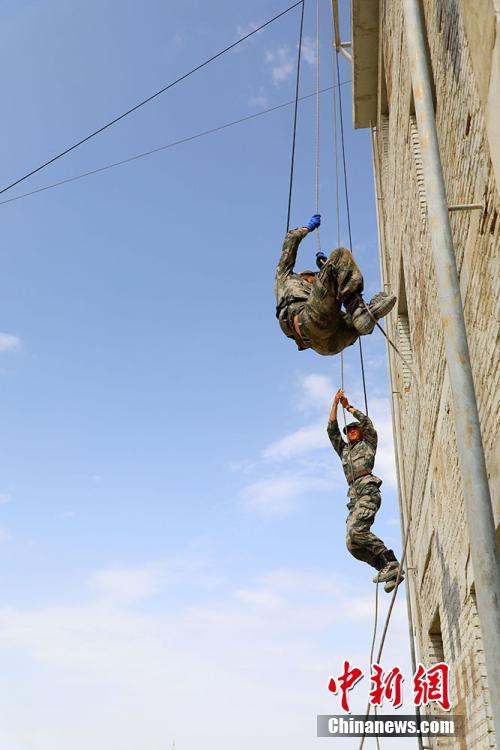 陆军73集团军某特战旅官兵攀爬滑降12米高楼来去自如