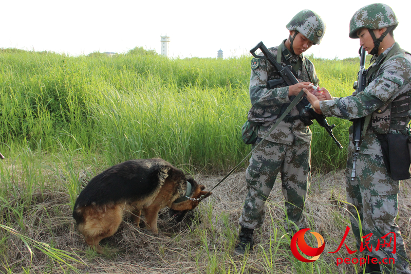 傍晚是蚊子、“小咬”最活跃的时间,军犬不堪骚扰总想在枯草地上刨洞钻进去躲避,队员们点燃艾香与军犬一起驱蚊。(人民网记者 曹昆 摄)