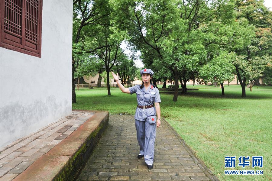 6月11日,红军后代、红色讲解员邓张姗在江西瑞金叶坪革命旧址群讲解。她已从事红色文化讲解工作十余年。 新华社记者李任滋摄