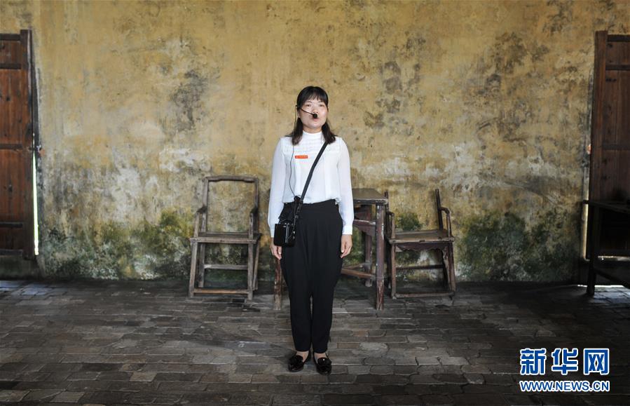 6月11日,红军后代、瑞金市委党校教师、红色讲解员朱慧琳在江西瑞金叶坪革命旧址群讲解。她已从事红色文化讲解工作八年左右。 新华社记者李任滋摄
