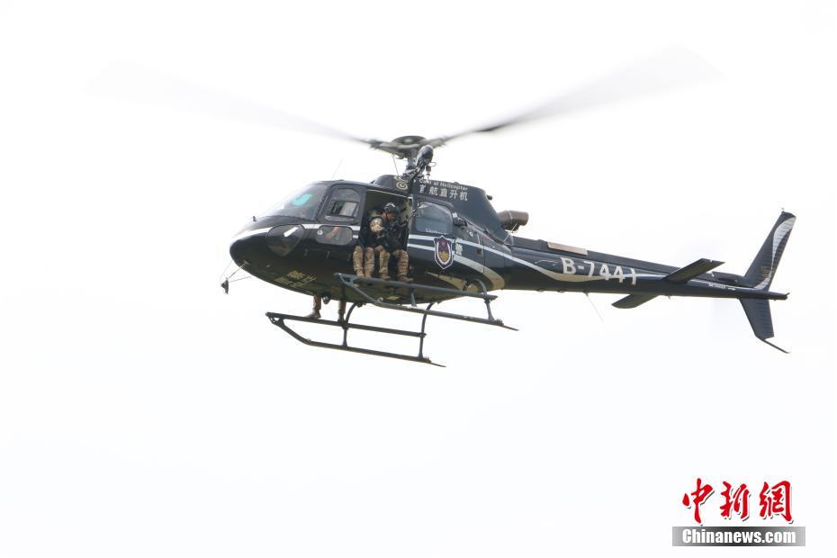 广西警方反恐演习出动直升机 强化空地联合作战力