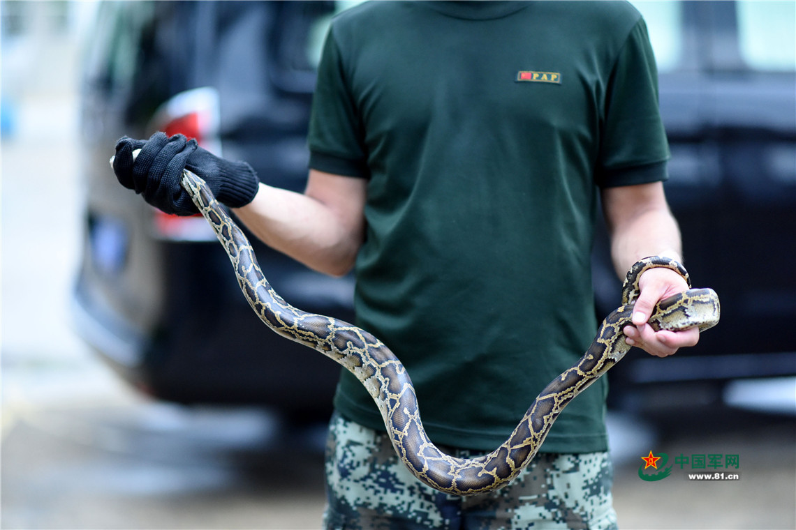 6月25日,武警官兵终于捉住了这条淘气的蟒蛇,并移交给了相关部门。
