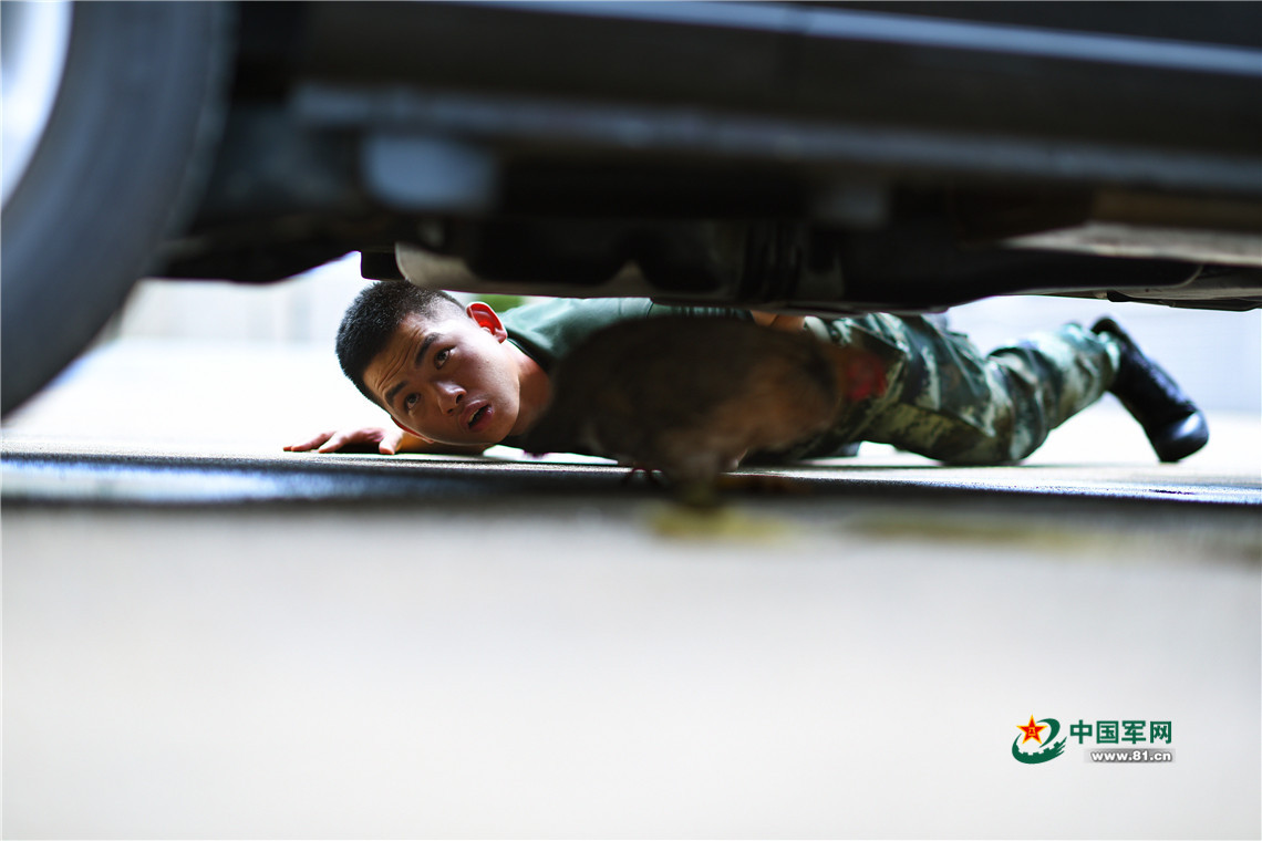 6月25日,武警官兵在车边栓了一只活鸡来引诱蟒蛇捕食。