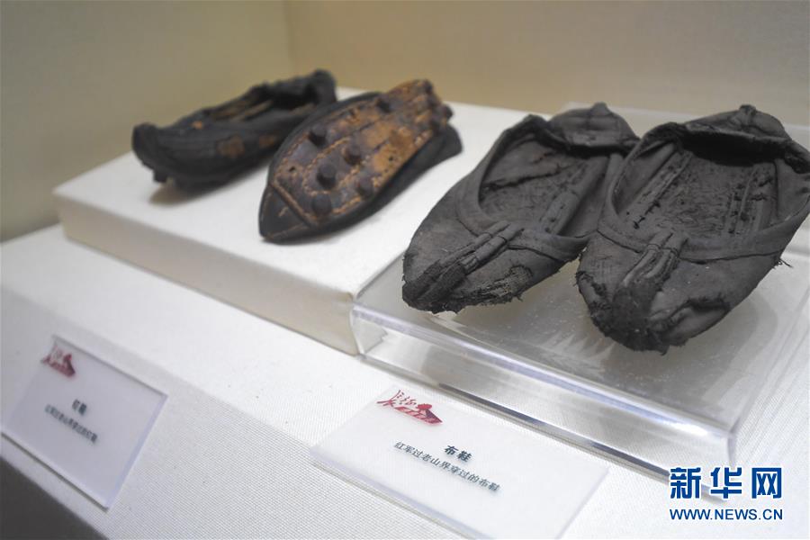 这是在湖南通道侗族自治县通道转兵纪念馆内拍摄的红军穿过的布鞋和钉鞋(6月18日摄)。新华社发(陈泽国 摄)