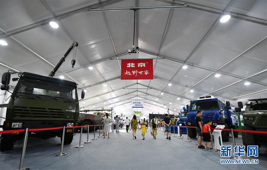 6月29日,观众参观展出的防务车辆。 当日,2019中津防务车辆装备展迎来公众开放日,观众有机会近距离参观我国防务车辆装备并感受其优异性能。据了解,本次展览在国家会展中心(天津)东侧展场举行,由静态展示区与动态演示区组成,展品包括军用车辆、警用车辆、安保车辆等装备。 新华社记者 李然 摄