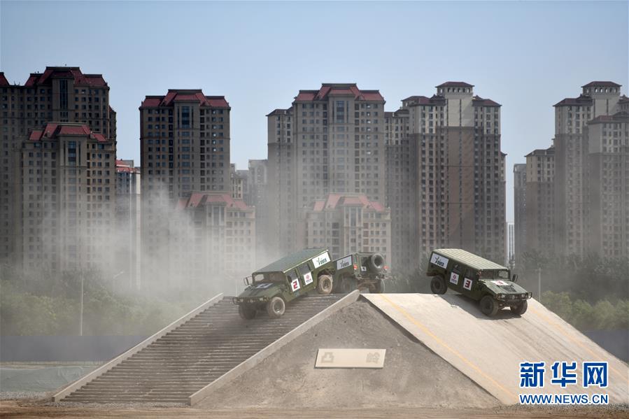 6月29日,参展车辆在进行机动表演。 当日,2019中津防务车辆装备展迎来公众开放日,观众有机会近距离参观我国防务车辆装备并感受其优异性能。据了解,本次展览在国家会展中心(天津)东侧展场举行,由静态展示区与动态演示区组成,展品包括军用车辆、警用车辆、安保车辆等装备。 新华社记者 李然 摄