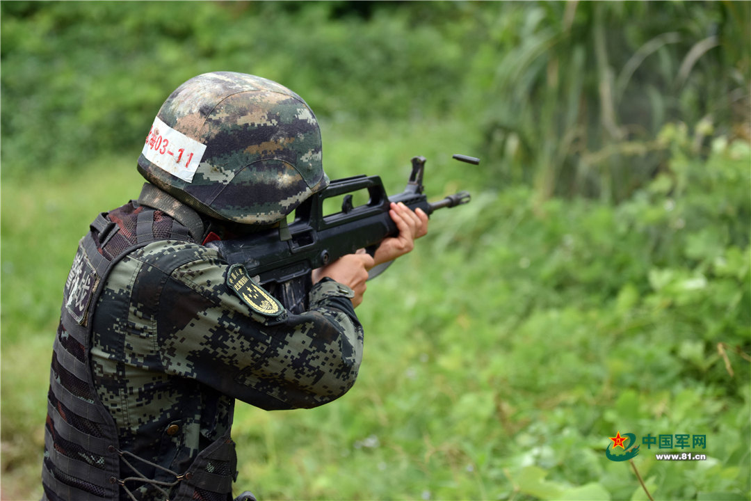 6月27日,搜索射击训练课目中,一名特战队员发现目标后快速击发。