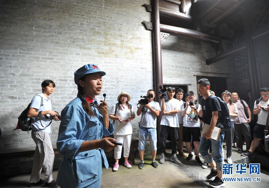 6月21日,媒体记者在冯达飞将军故居听取介绍。新华社记者 李任滋 摄