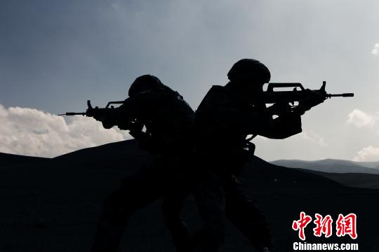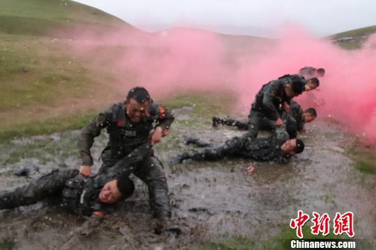 图为武警青海总队机动第一支队的特战队员们进行团队协作。 李旭东 摄